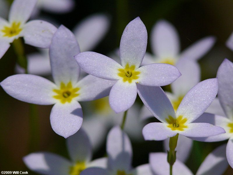 Quaker Ladies flowers, also known as Houstonia caerulea, are a perennial plant that thrives in moist environments with full sun to partial shade.
